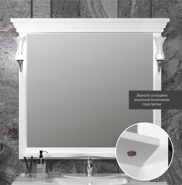 Светильники приобретаюся отдельно.Зеркала по умолчанию идут с отверстиями под светильники. В случае отсутствия необходимости заказа светильников, возможна комплектация зеркала декоративными накладками серебро или бронза.Коллекция Риспекто символизирует лучшие традиции неоклассики в сочетании с необыкновенной функциональностью и простотой дизайна.Строгий контроль при изготовлении изделий исключает наличие малейших дефектов. Зеркальное полотно дает четкое отражение без каких-либо искажений. Слоновая кость цвет прекрасно дополнит интерьер ванной комнаты.