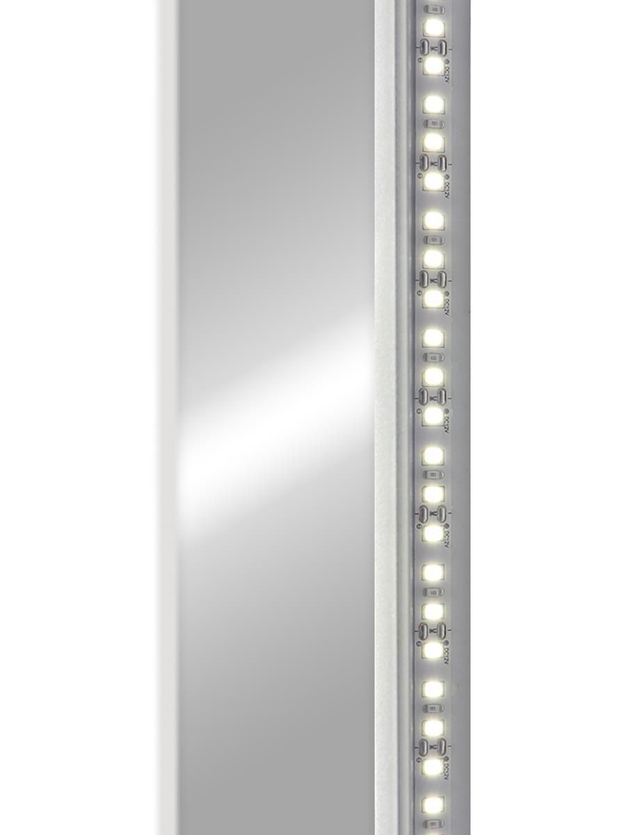 Защита по стандарту IP54, позволяет использовать зеркало в помещениях с повышенной влажностью. Подсветка 6000K позволяет использовать зеркало как элемент дополнительного освещения.