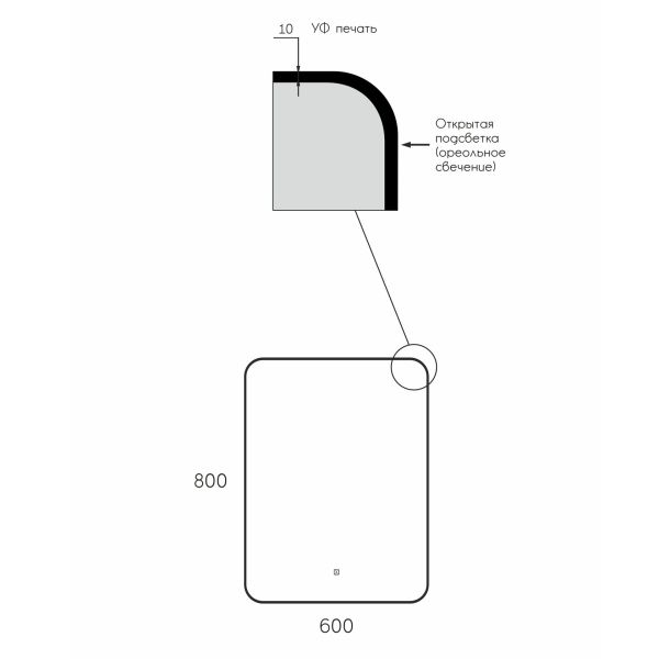 Зеркало Reflexon Night с фронтальной подсветкой, к/с, диммером 600х800