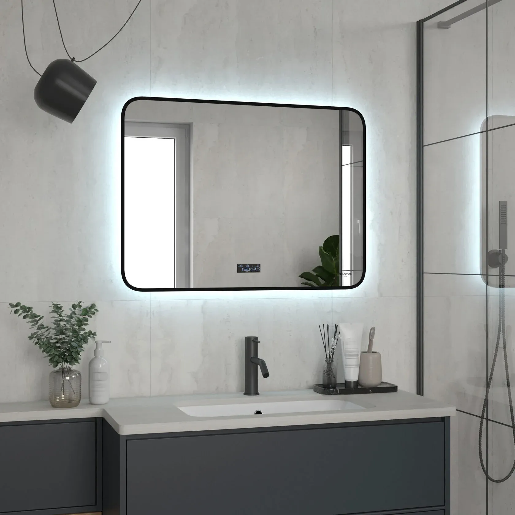 Зеркало Reflexion Shadow с фоновой подсветкой, сенсором, диммером, часами и подогревом 800х600