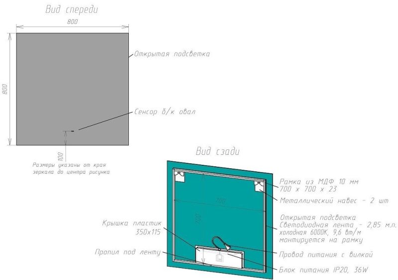 Тип:зеркало с подсветкой