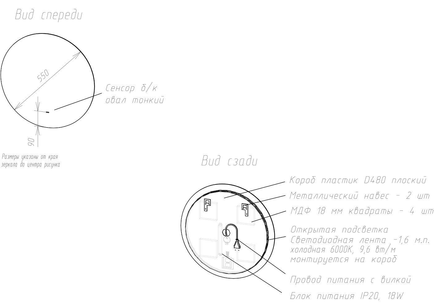 Зеркало с холодной подсветкой Art&Max Sanremo 55см AM-San-550-DS-F