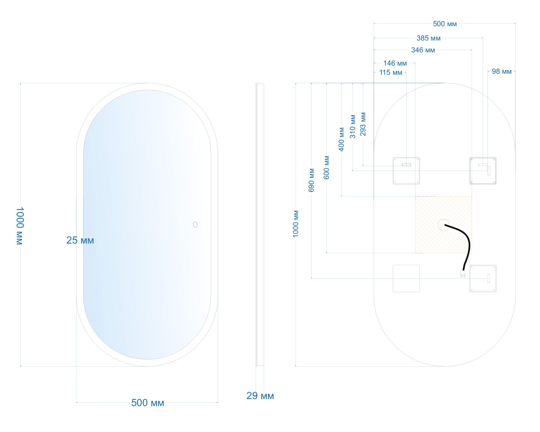 Тип:зеркало с подсветкой