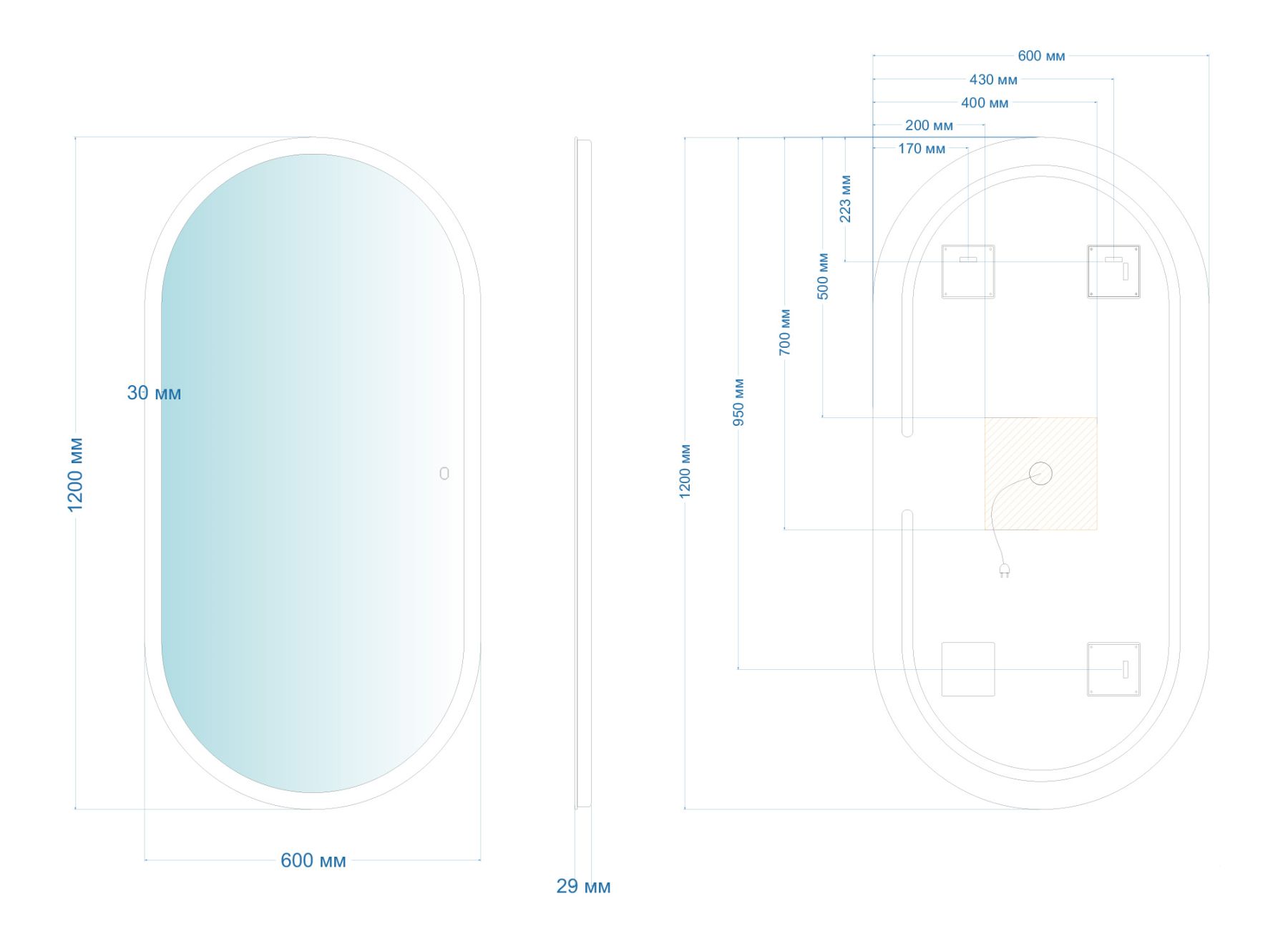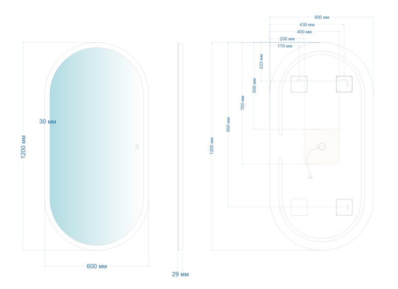 Зеркало ABBER Kontur AG6303SL-1.2 с подсветкой, сенсорный выключатель, диммер