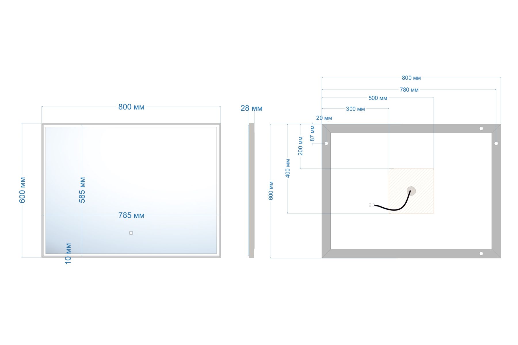 Тип:зеркало с подсветкой