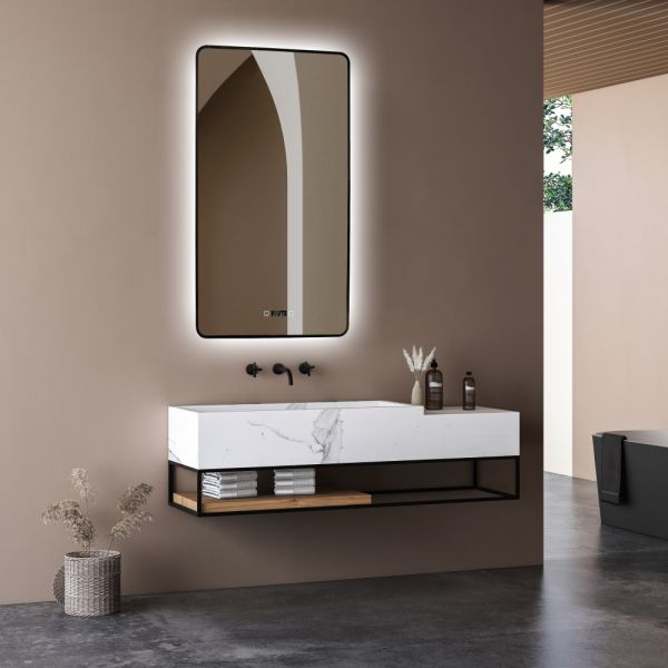 Зеркало ABBER See AG6114SWHB с подсветкой, бесконтактный выключатель, диммер, часы, подогрев, черный