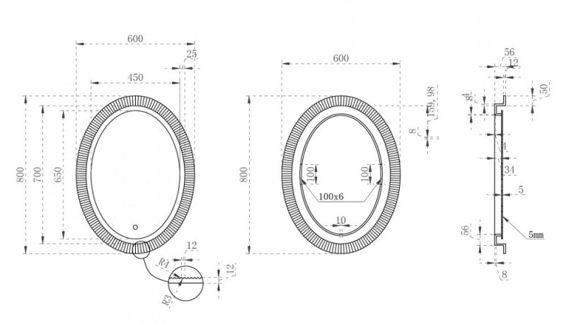 Зеркало с подсветкой ABBER Stein AS6601Blau 60см голубой