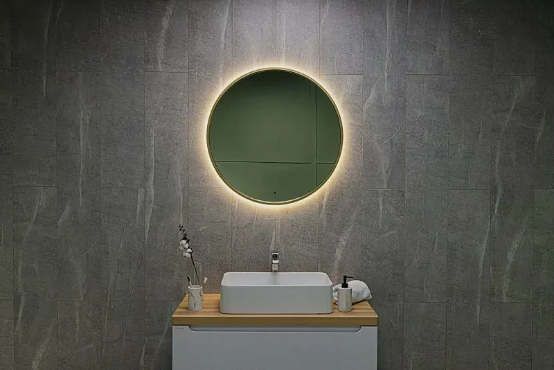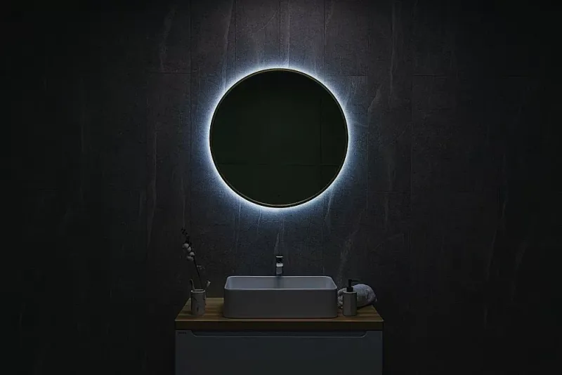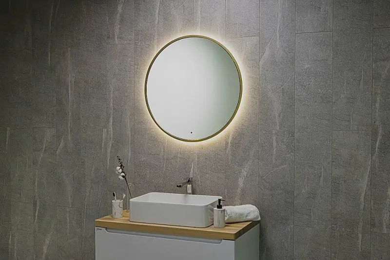 Ореольная подсветка подчеркивает форму зеркала и создает эффект парения.