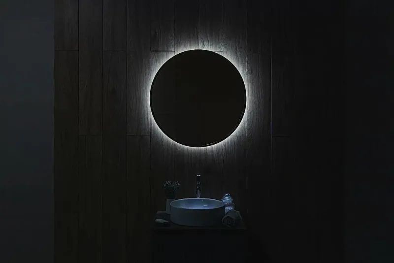 Ореольная подсветка подчеркивает форму зеркала и создает эффект парения.