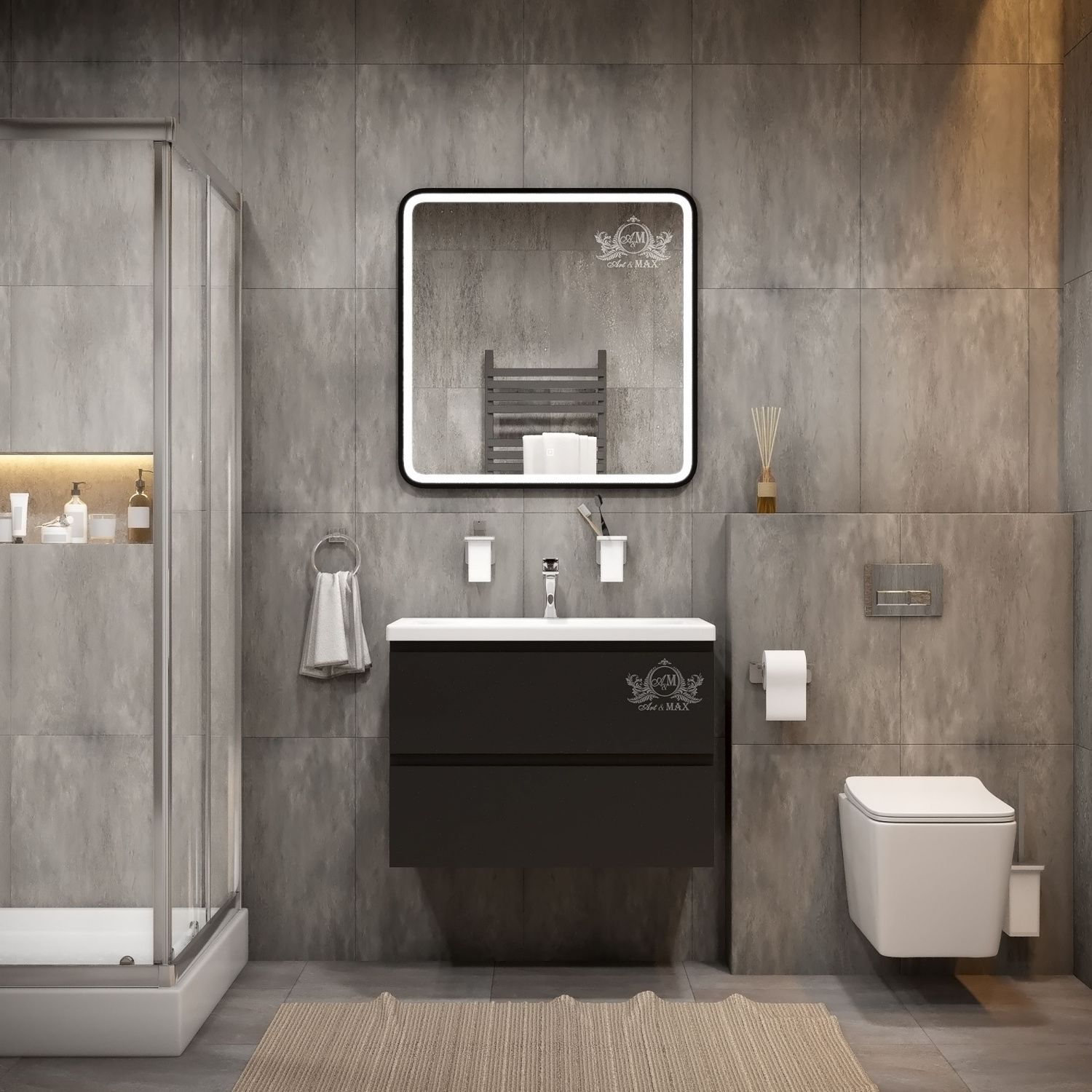 Зеркало с подсветкой Art&Max Genova 80см чёрный AM-Gen-800-800-DS-F
