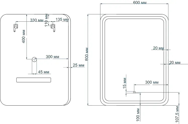Оснащение: зеркало, крепеж, коробка, инструкция