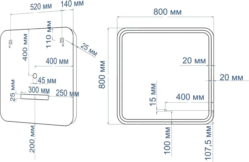 Оснащение: зеркало, крепеж, коробка, инструкция