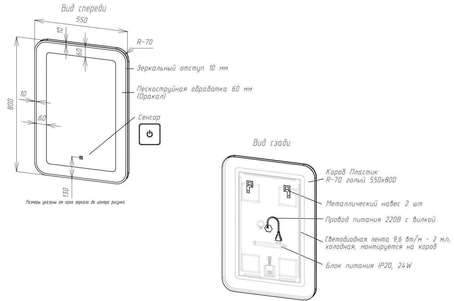 • Толщина зеркального отступа: 10 мм
