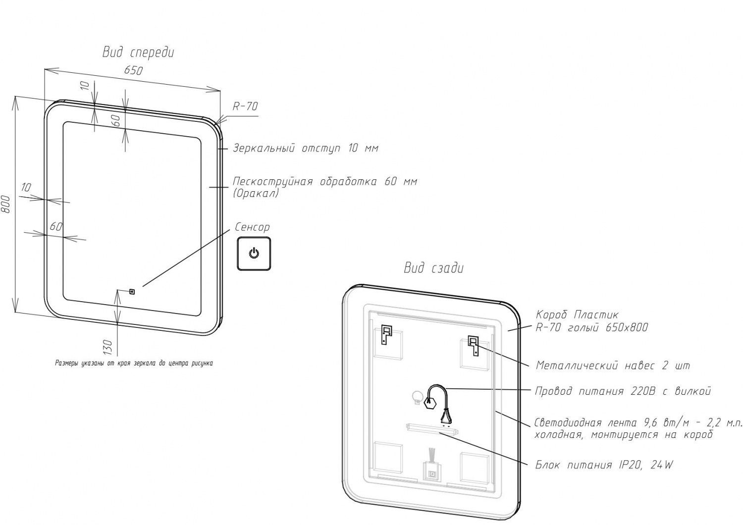 • Толщина светодиодной рамки: 60 мм