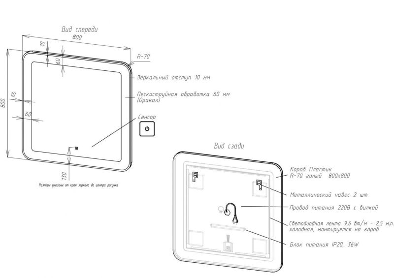 Зеркало с подсветкой Art&Max Latina 80см AM-Lat-800-800-DS-F купить