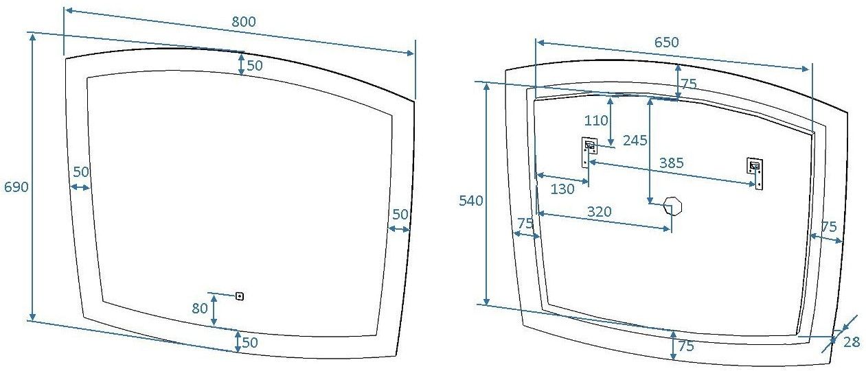• Размер зеркального полотна: 650х540 мм