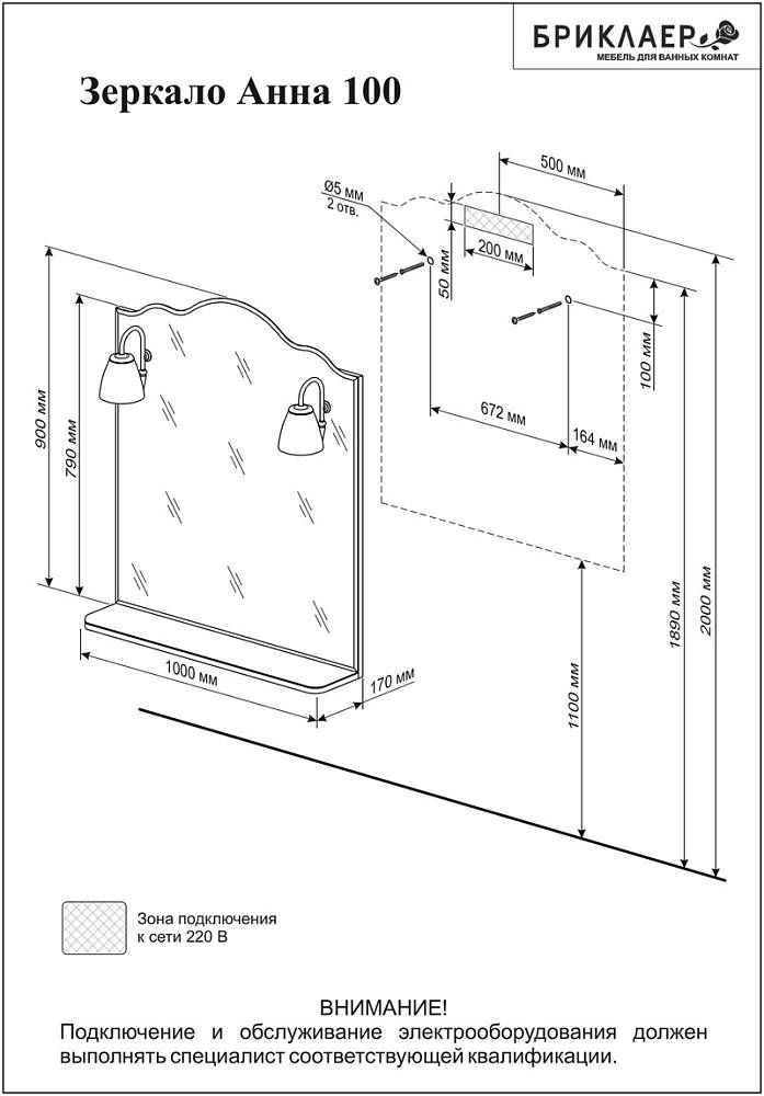 Зеркало с подсветкой Бриклаер Анна 4627125411342 100 см белый купить