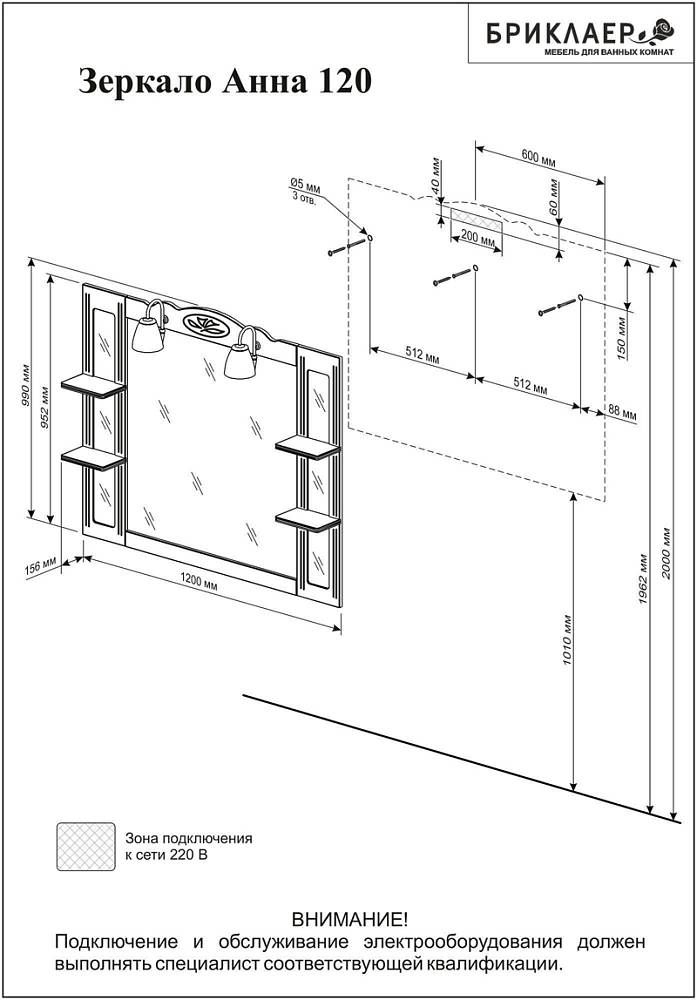 Зеркало с подсветкой Бриклаер Анна 4627125411359 120 см белый купить