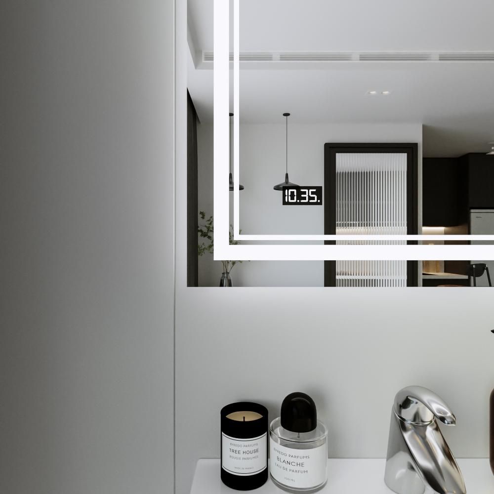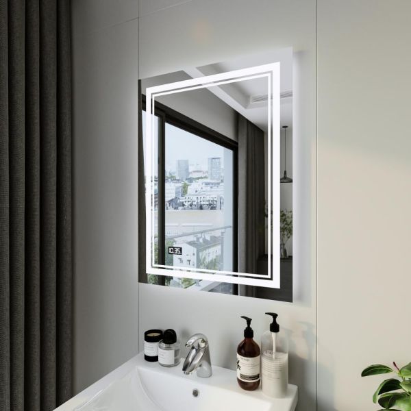Зеркало с подсветкой Бриклаер Эстель-2 4627125414282 с часами 60 см на взмах руки