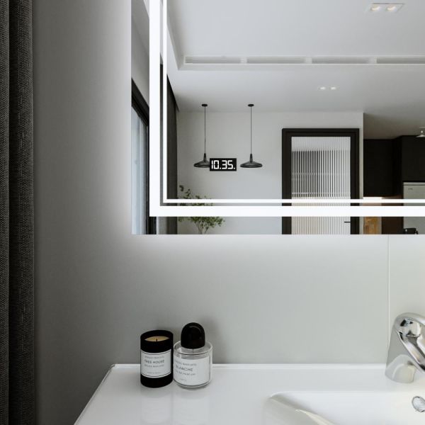 Зеркало с подсветкой Бриклаер Эстель-2 4627125414336 с часами 120 см на взмах руки купить