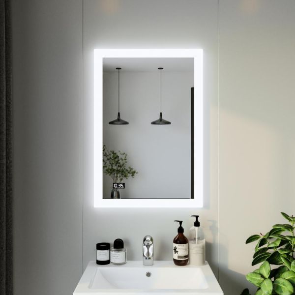 Зеркало с подсветкой Бриклаер Вега 4627125414206 с часами 55 см на взмах руки купить