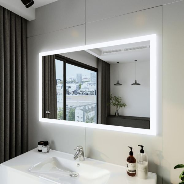 Зеркало с подсветкой Бриклаер Вега 4627125414398 с часами 125 см на взмах руки купить