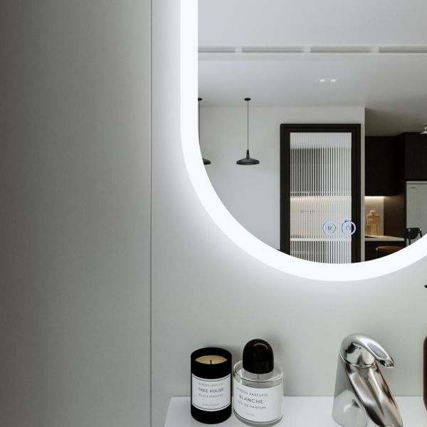Зеркало с подсветкой Бриклаер Вега 4627125415715 с голосовым управлением и подогревом 55 см сенсор на зеркале