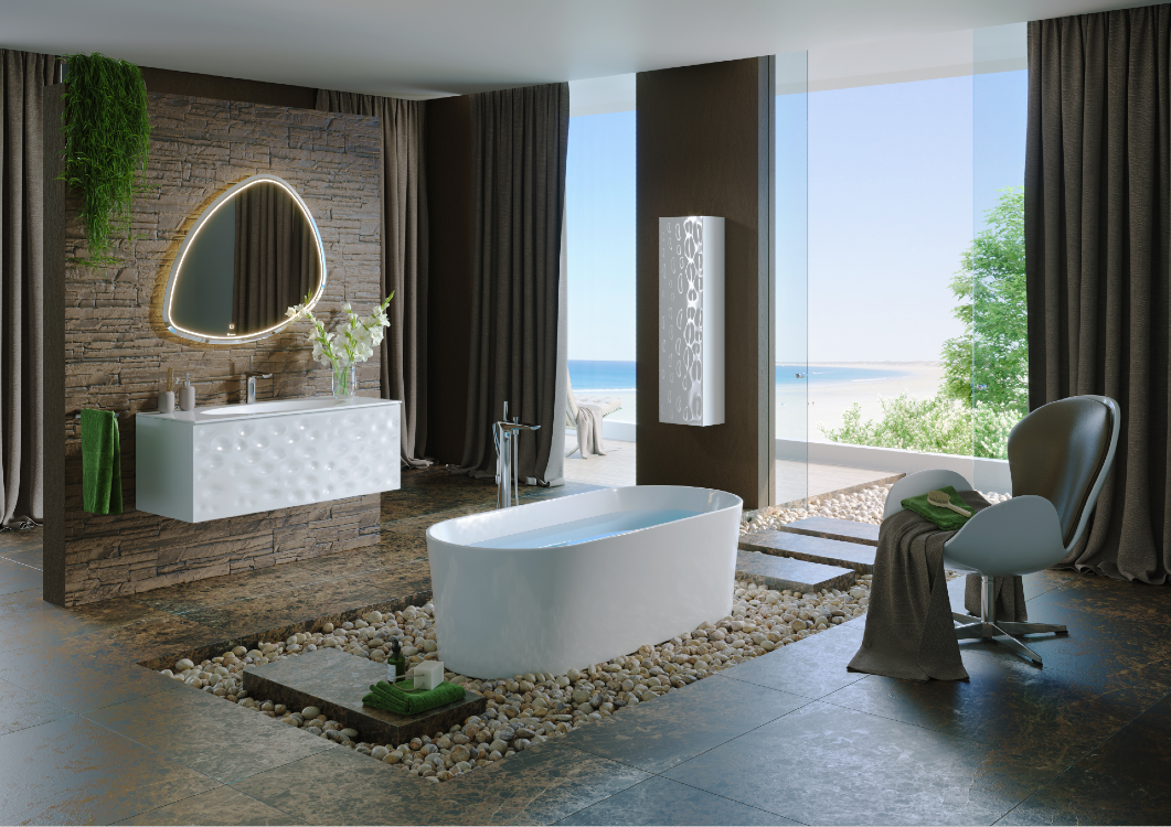 Подвесное зеркало Clarberg Stone 95 Stn.02.10 в форме камня, c энергосберегающей светодиодной подсветкой по периметру. Природные мотивы дизайна.С подсветкой