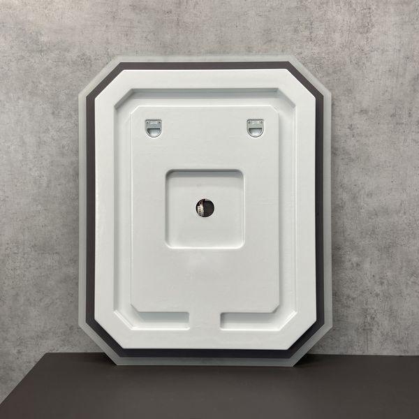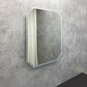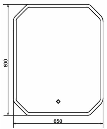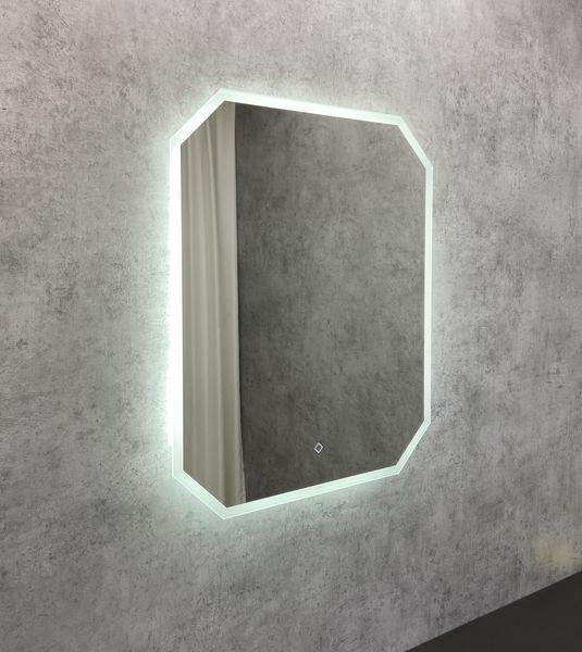 Зеркало оснащено встроенным светодиодным светильником и сенсорной кнопкой включения подсветки. Высококачественное зеркальное полотно с амальгамой на основе серебра.