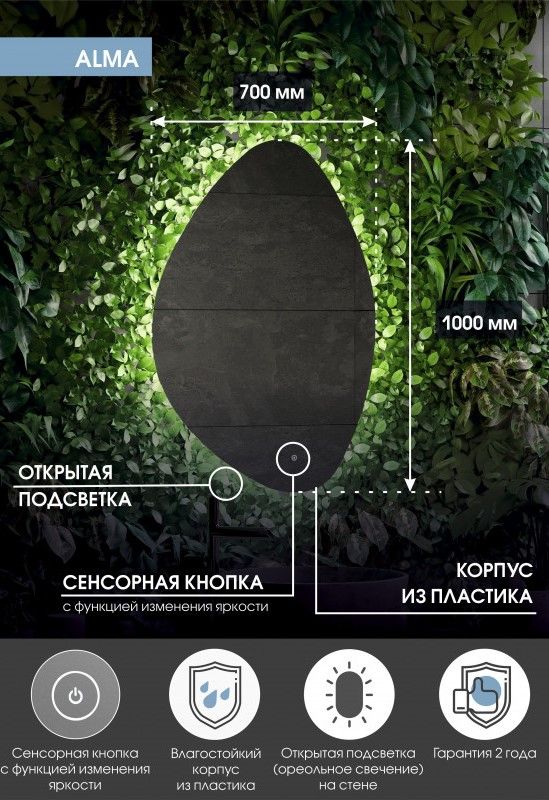 Зеркало "Alma Led" 700х1000LED подсветка 6000Ксенсорный выключатель с функцией димированияореольная подсветка