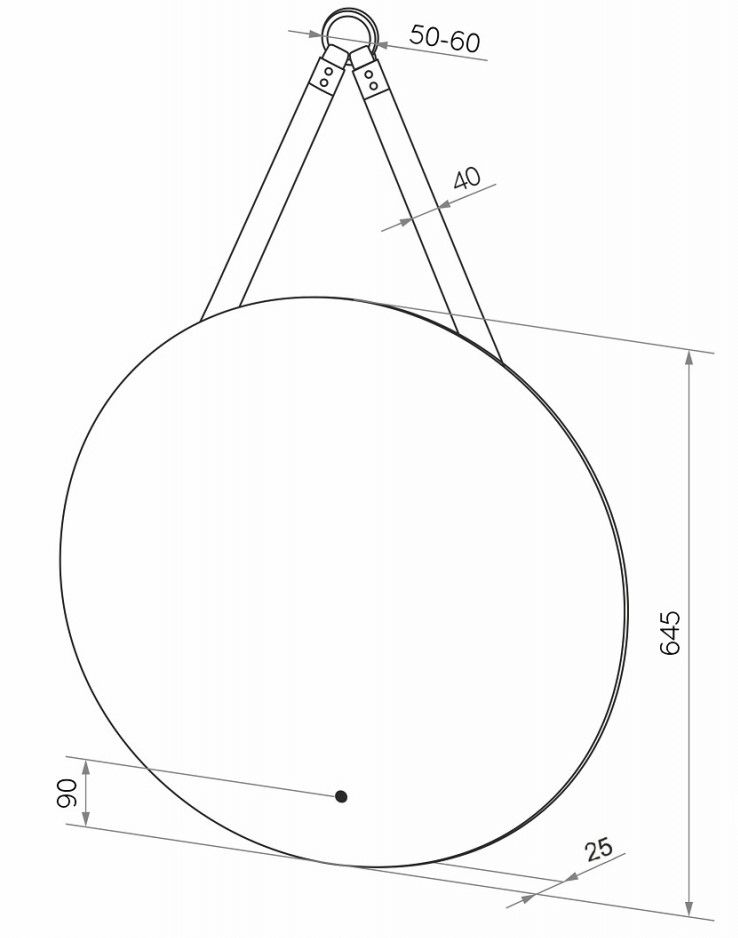 Зеркало " Best Led" D 650 на ремне из натуральной кожи черного цвета с бесконтактным сенсоромLED подсветка 6000Кбесконтактный сенсор с функцией димированияореольная подсветка.