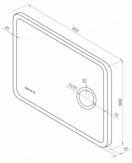 Зеркало "Bliss Led" 800х600 с увеличительным зеркалом, часамиLED подсветка 6000Ксенсорный выключательвстроенное увеличительное зеркало (линза) с 3-х кратным увеличениемдополнительная подсветка вокруг линзывстроенные часы