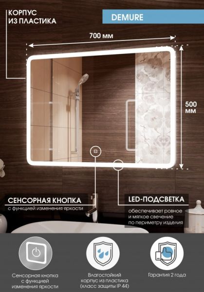 Зеркало "Demure Led" 700х500LED подсветка 6000Ксенсорный выключатель с функцией димирования