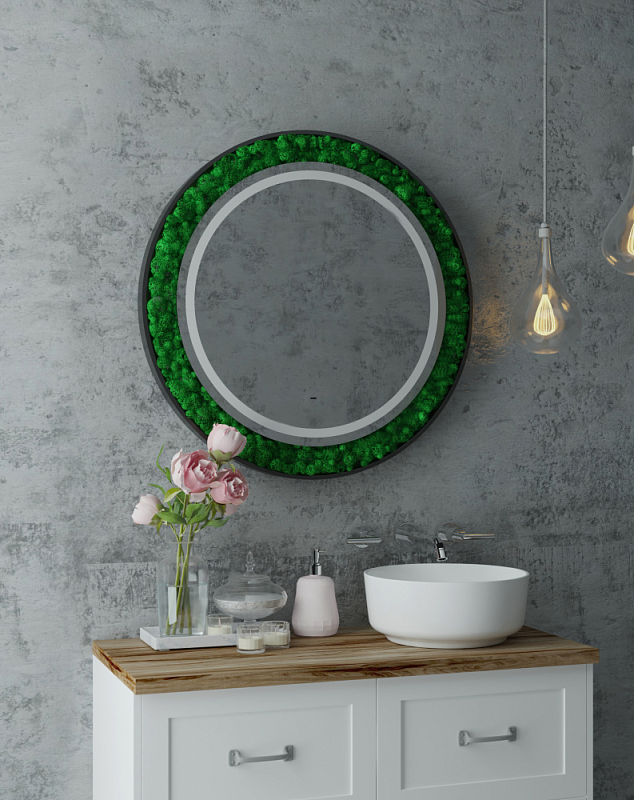Зеркало "Forest Led" d 1000 с бесконтактным сенсоромLED подсветка 6000Кбесконтактный сенсор с функцией димированиядекоративный мох