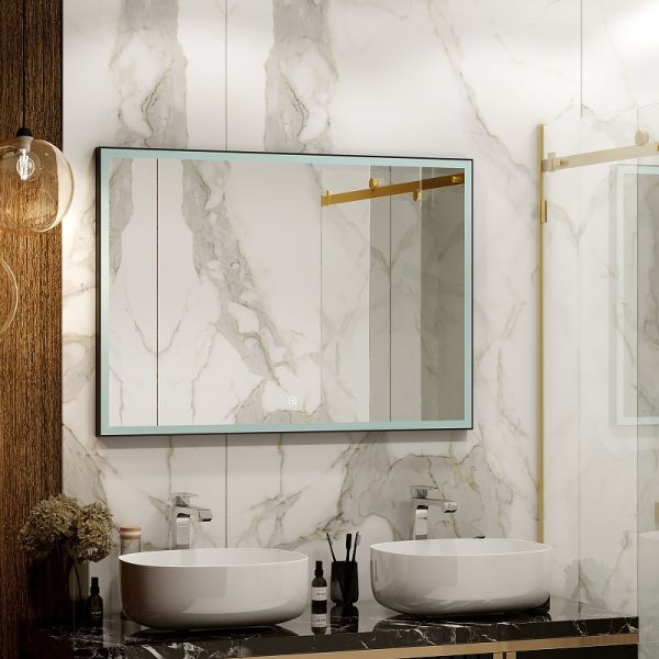 Зеркало "Frame Black LED" 1200х700LED подсветка 6000Ксенсорный выключателькороб из алюминиевого профиля черного цвета