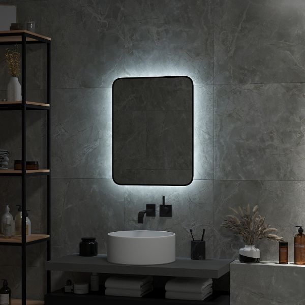 Зеркало "Torry Led" с фоновой подсветкой, бесконтактным сенсором, черной окантовкой 600х700LED подсветка 6000К;бесконтактный сенсор с функцией димирования;открытая ореольная подсветка.