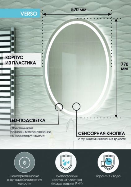 Зеркало "Verso Led" 570х770LED подсветка 6000Ксенсорный выключатель с функцией димирования