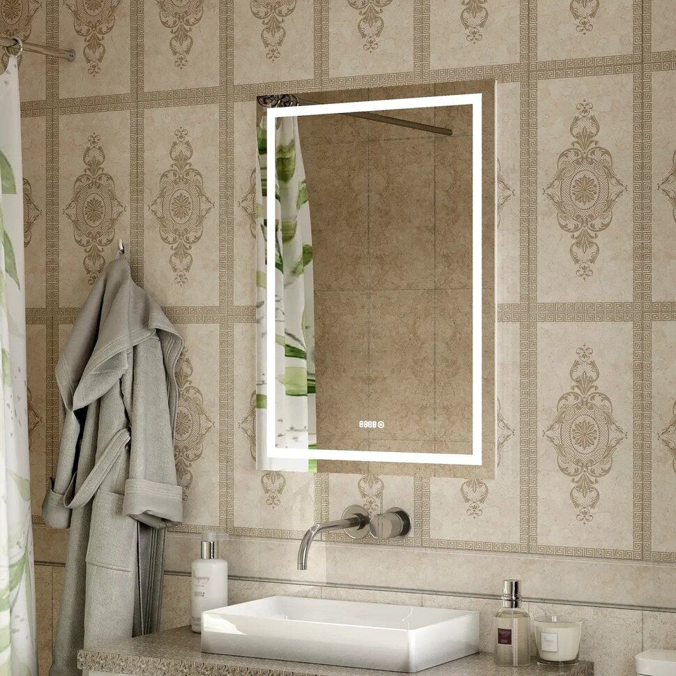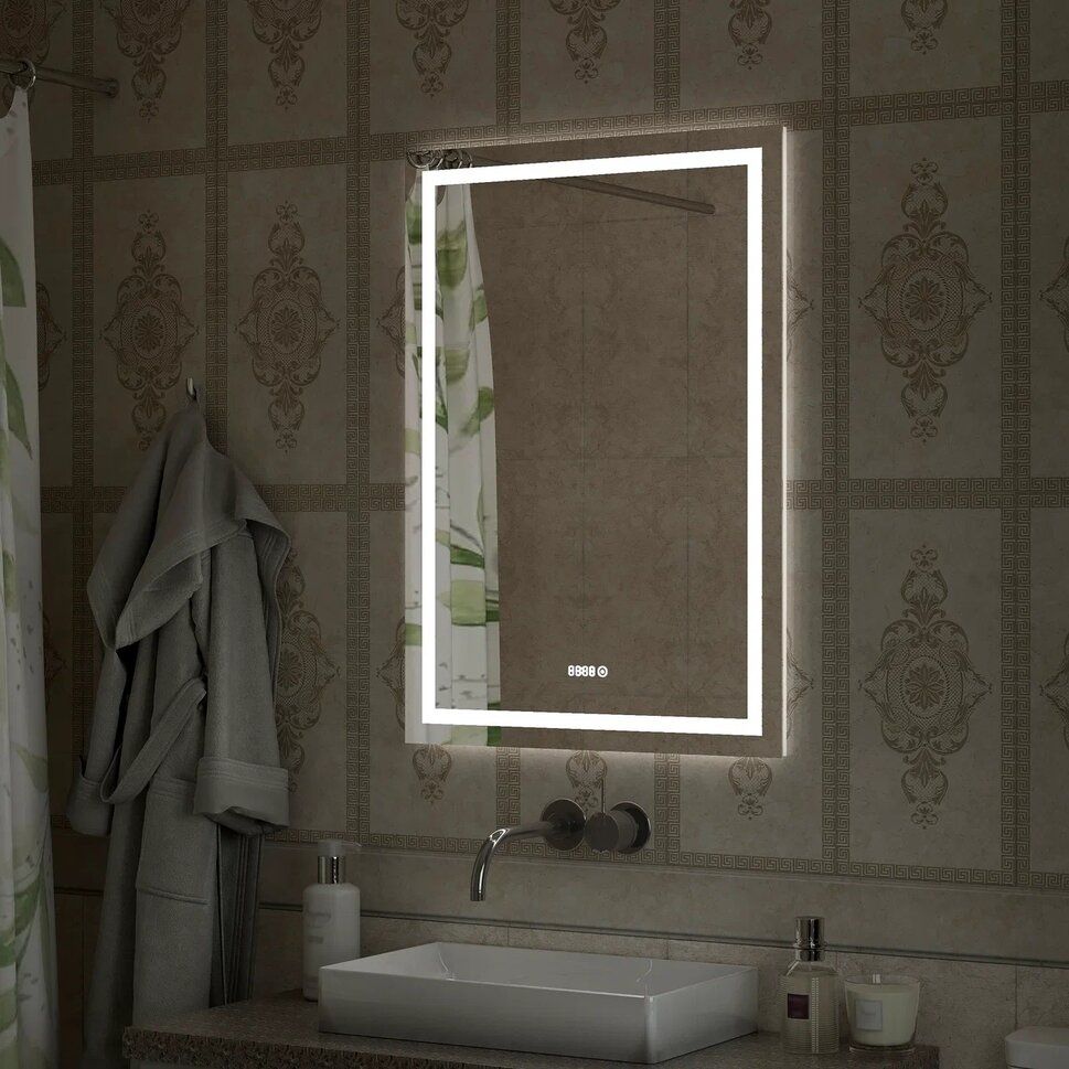 Зеркало "Verte Led" 700х1000 с часами, датчиком движенияLED подсветка 6000Кдатчик движениявстроенные часы