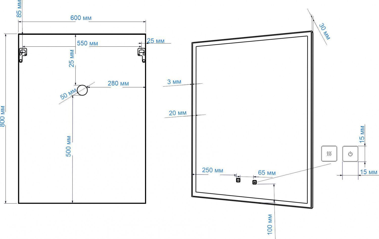 • Теплая и холодная подсветка с возможностью переключения