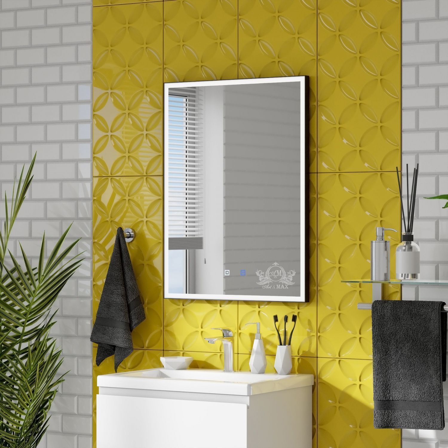 Зеркало Art&Max выполнено в современном стиле и отлично дополнит интерьер любой ванной комнаты. Благодаря подвесной конструкции модель не занимает много места, что позволяет экономить пространство в небольшой ванной комнате. Модель оснащена встроенной светодиодной LED подсветкой с диммером и функцией антизапотевания, также профилем из полированного аллюминия по периметру зеркала.В комплект поставки входит крепеж.Особенности: