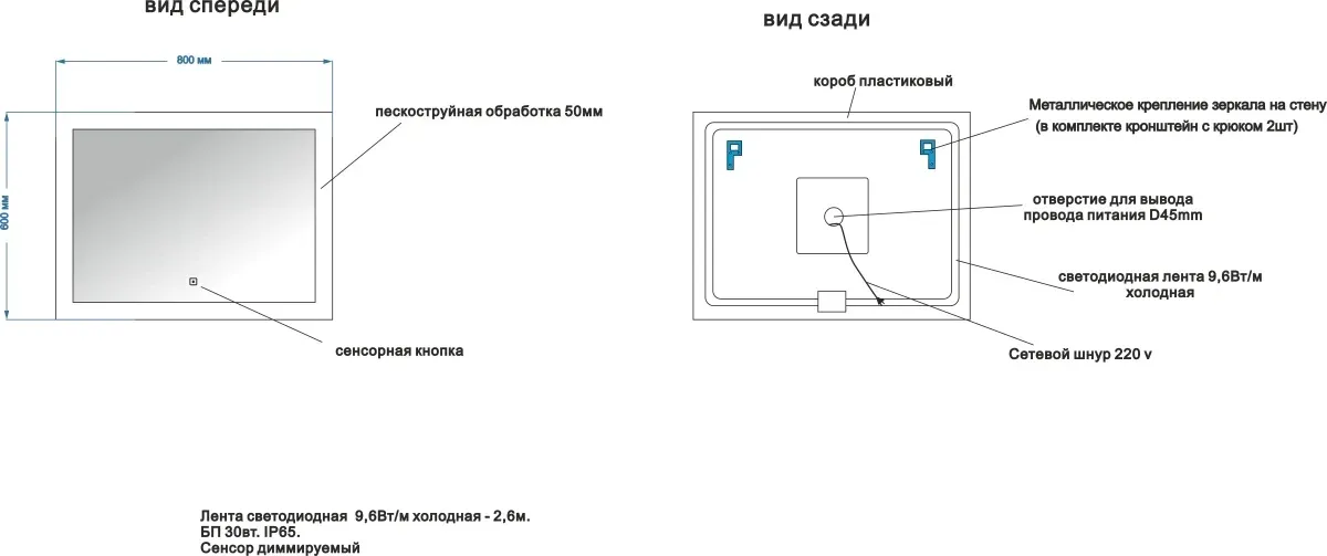 • Ширина светодиодной рамки: 50 мм