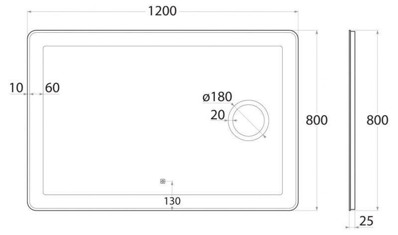 - Толщина подсветки вокруг увеличительной линзы: 20 мм
