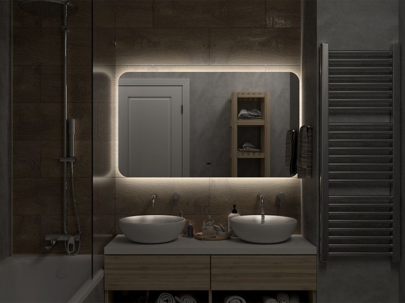 Зеркало с подсветкой для ванной комнаты — это элемент интерьера, который сочетает в себе функции, эстетику и современный дизайн. Его изящная форма и тонкие линии легко вливаются в любое пространство, создавая атмосферу утонченности и уюта.Интегрированная светодиодная подсветка обрамляет зеркало, даря мягкий, рассеянный свет, который не только позволяет удобно наносить макияж, но и наполняет ванную комнату теплом и позитивной энергией.Классический дизайн позволяет использовать его в различных стилях – от минимализма до современного эклектичного оформления. Оно прекрасно вписывается в любую цветовую гамму, будь то нейтральные тона или более яркие акценты.