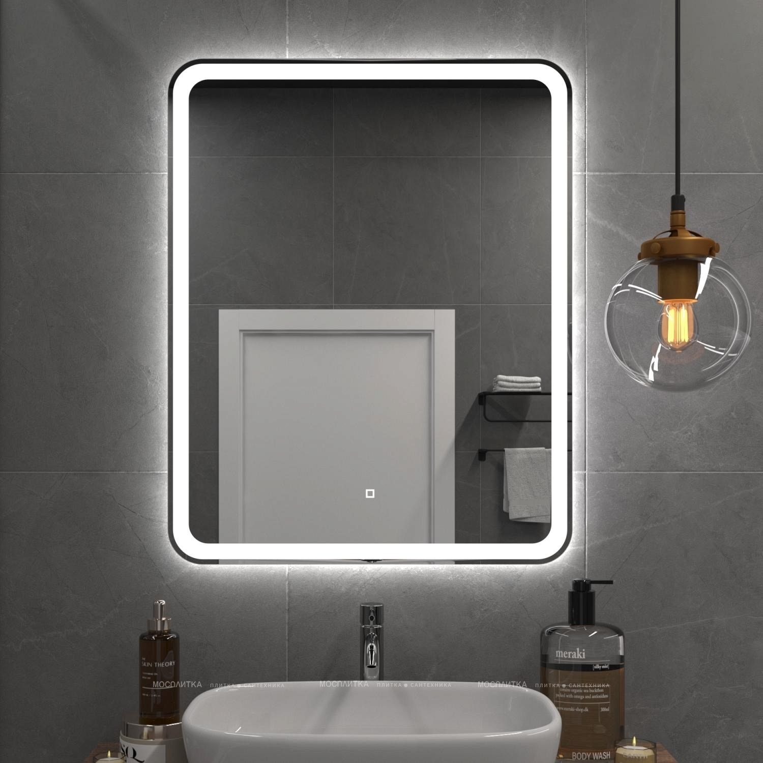Яркость LED-подсветки регулируется при помощи встроенного диммера и сенсорной кнопки на поверхности зеркала.