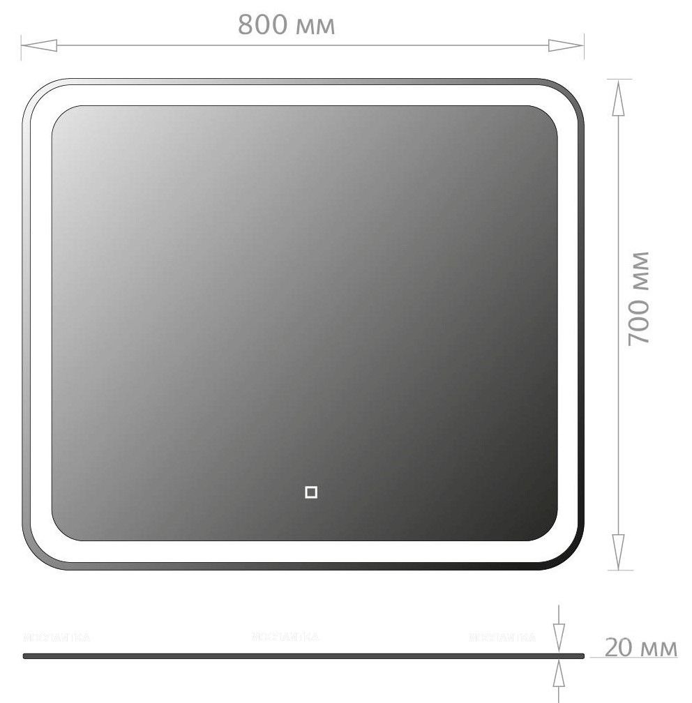 Яркость LED-подсветки регулируется при помощи встроенного диммера и сенсорной кнопки на поверхности зеркала.