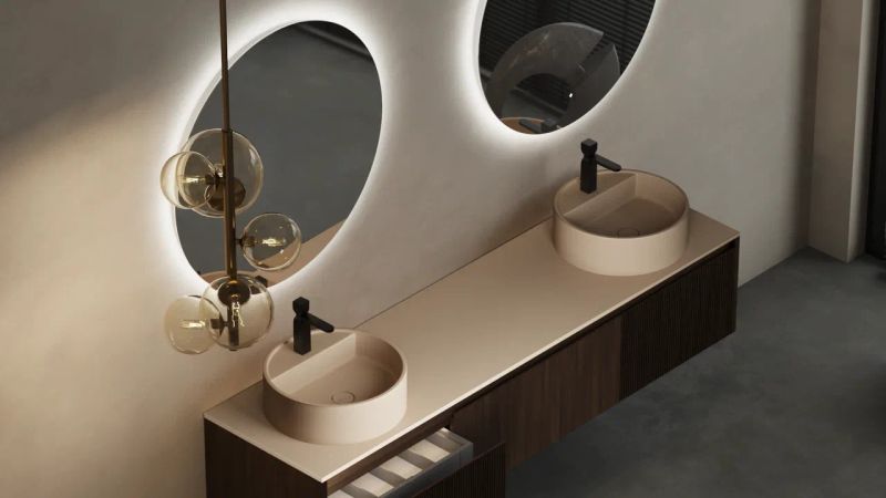 Сегодня главными трендами в дизайне зеркал для ванной являются минимализм и универсальность. Именно такими стали зеркала Salini из коллекции OMBRA диаметром от 60 до 100 см с шагом в 10 см. Также для заказа доступен увеличенный диаметр 200 см.