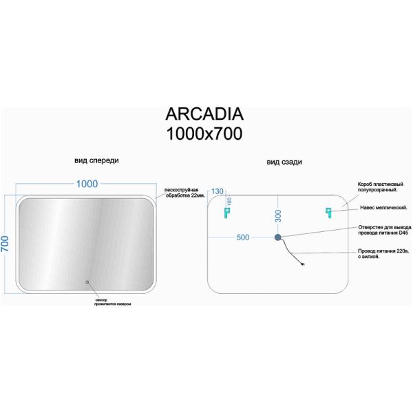 Зеркало с подсветкой Sancos Arcadia AR1000 100см с сенсорным выключателем
