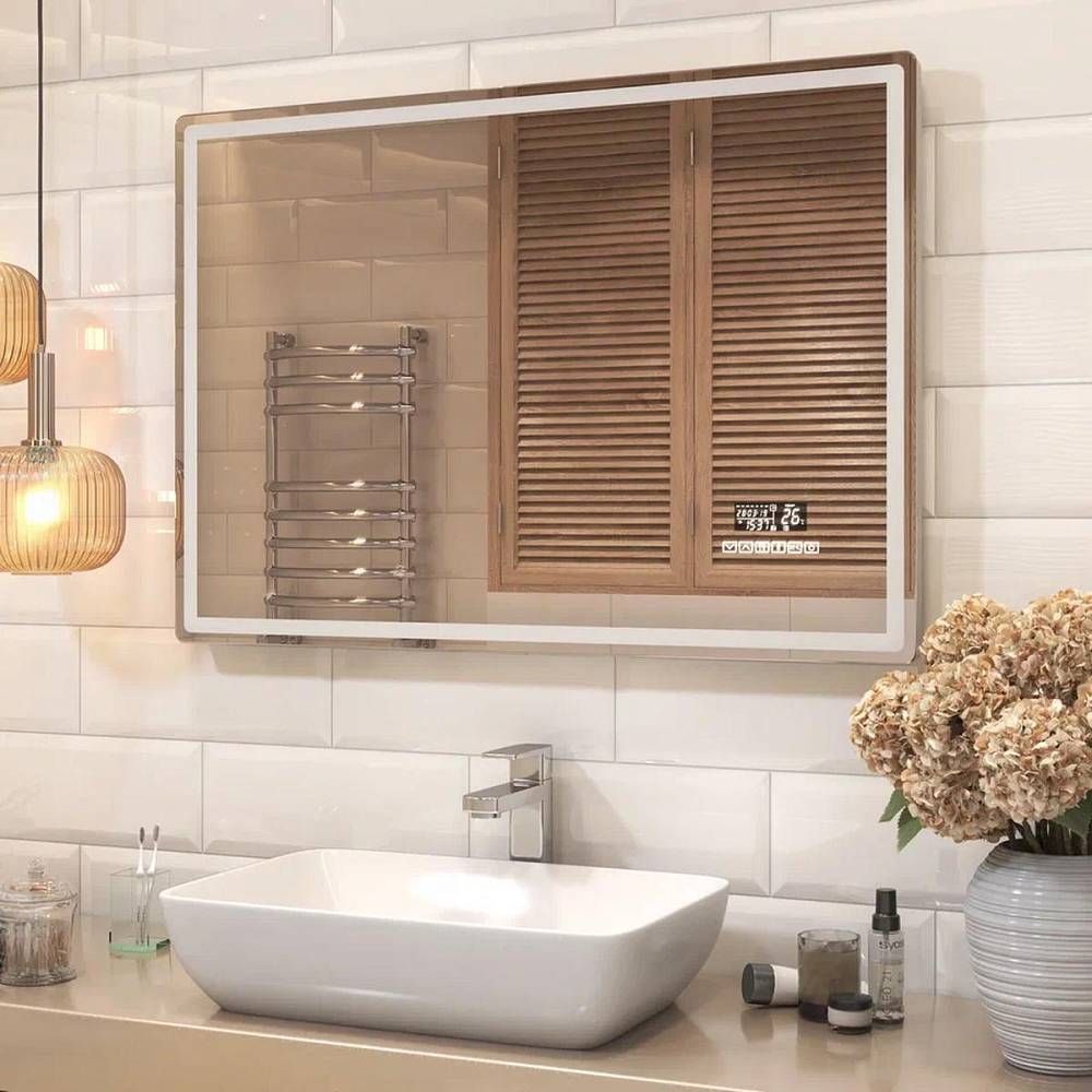 Сенсорное управление, голосовое управление, возможность прослушивания музыки через систему Bluetooth, 2 стереоколонки Sony, светодиодная подсветка, встроенные часы, дата, функция антизапотевания, датчик температуры
