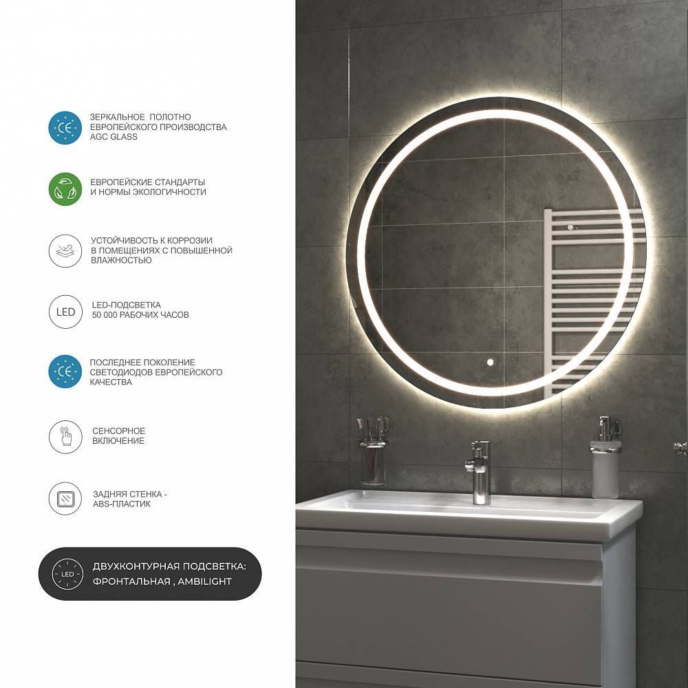 LED-зеркало: с подсветкой; с сенсорным управлением Подробнее