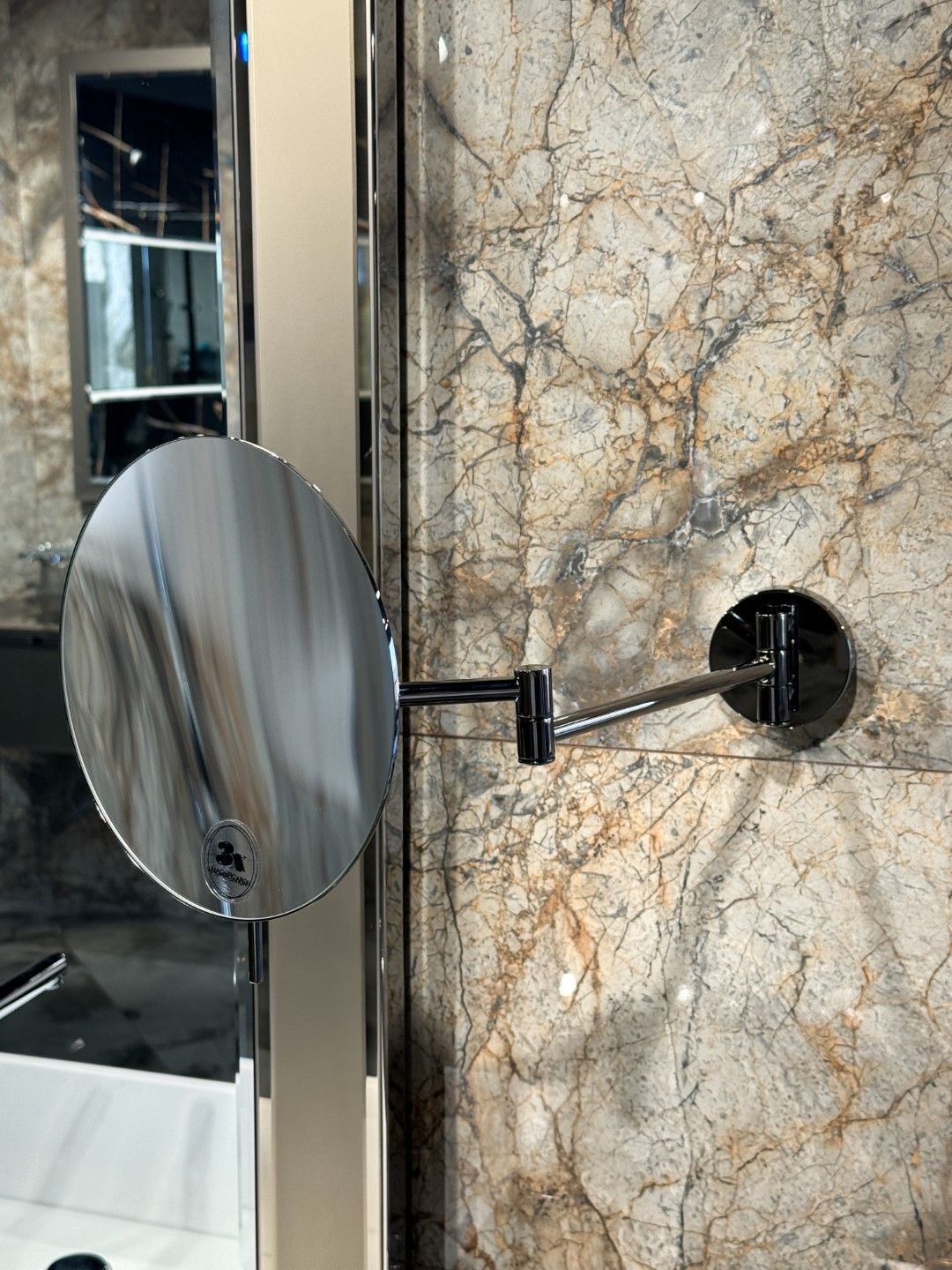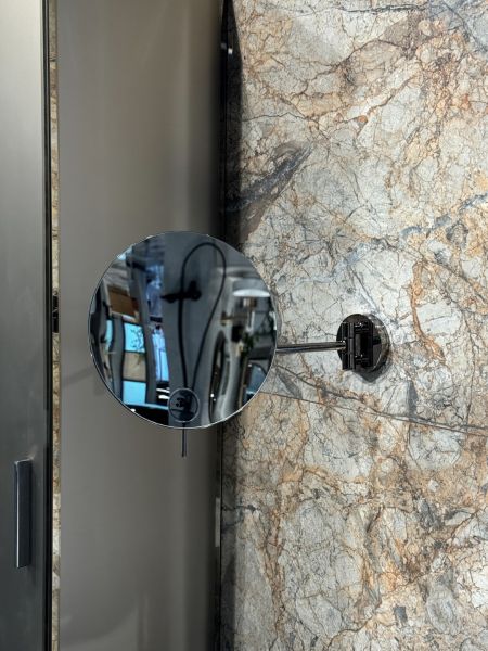 Настенные зеркала Boheme в круглом и прямоугольном исполнениях. С трехкратным увеличением. Минималистичный ультратонкий дизайн. Корпус выполнен из нержавеющей стали, угол поворота регулируется